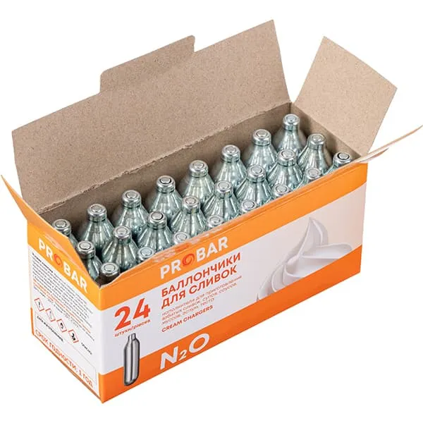 Баллончики для сифона для сливок 8г N20[24шт] сталь