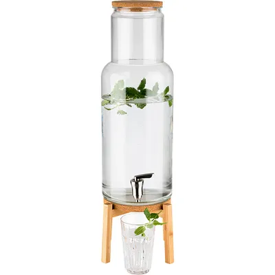 Диспенсер для холодных напитков на подставке, дерево стекло,металл 7,5л D=23,H=60,5см прозр.