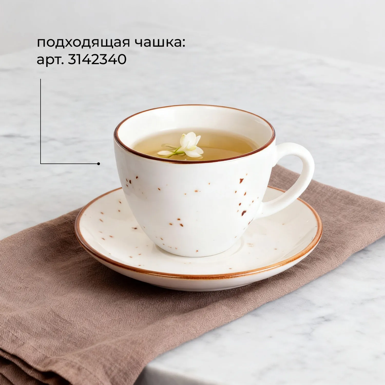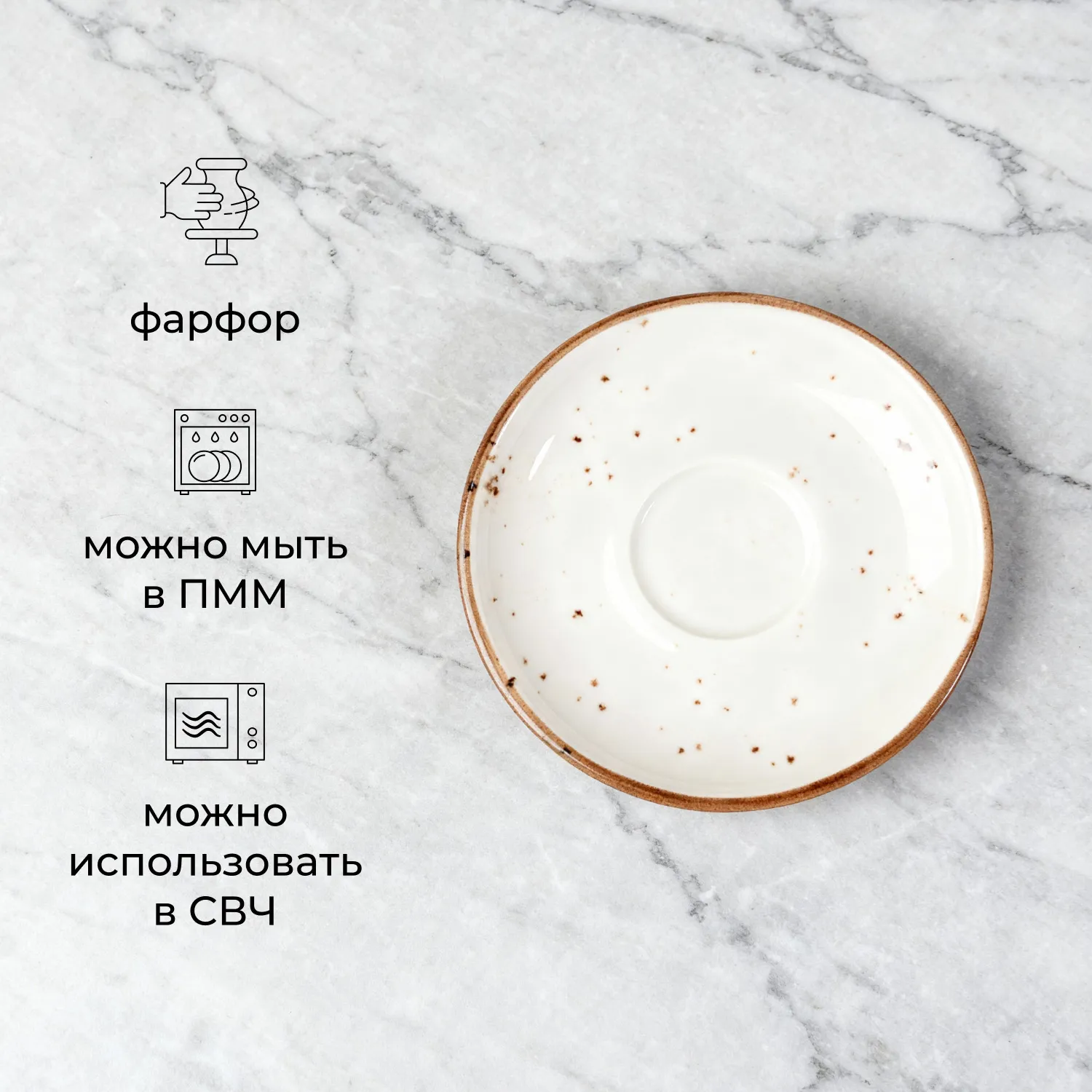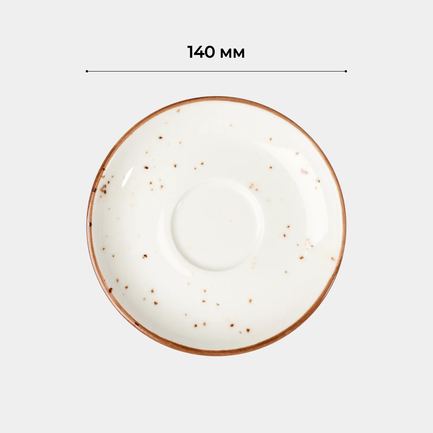 Блюдце «Париж» бренда Kunstwerk – элемент сервировки, созданный для элегантной подачи напитков и декоративных акцентов. Изготовлено из фарфора с глянцевым блеском в молочно-белом цвете. Деликатно украшено коричневыми крапинками и контурным кантом. Увеличенный диаметр – 14 см делает модель универсальной: на ней можно разместить не только чашку с кофе или чаем, но и порцию сахара, лимона или мини-десерт.