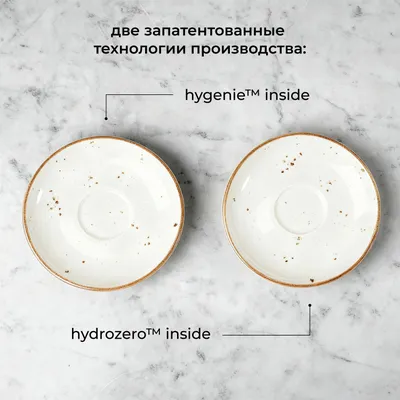 Прочность и долговечность фарфора обеспечены технологией Hydro Zero™ Inside. Она минимизирует пористость материала, обеспечивая устойчивость к сколам и царапинам. Технология HyGenie™ Inside добавляет поверхности антимикробные свойства, предотвращая размножение бактерий и упрощая уход на профессиональной кухне.
