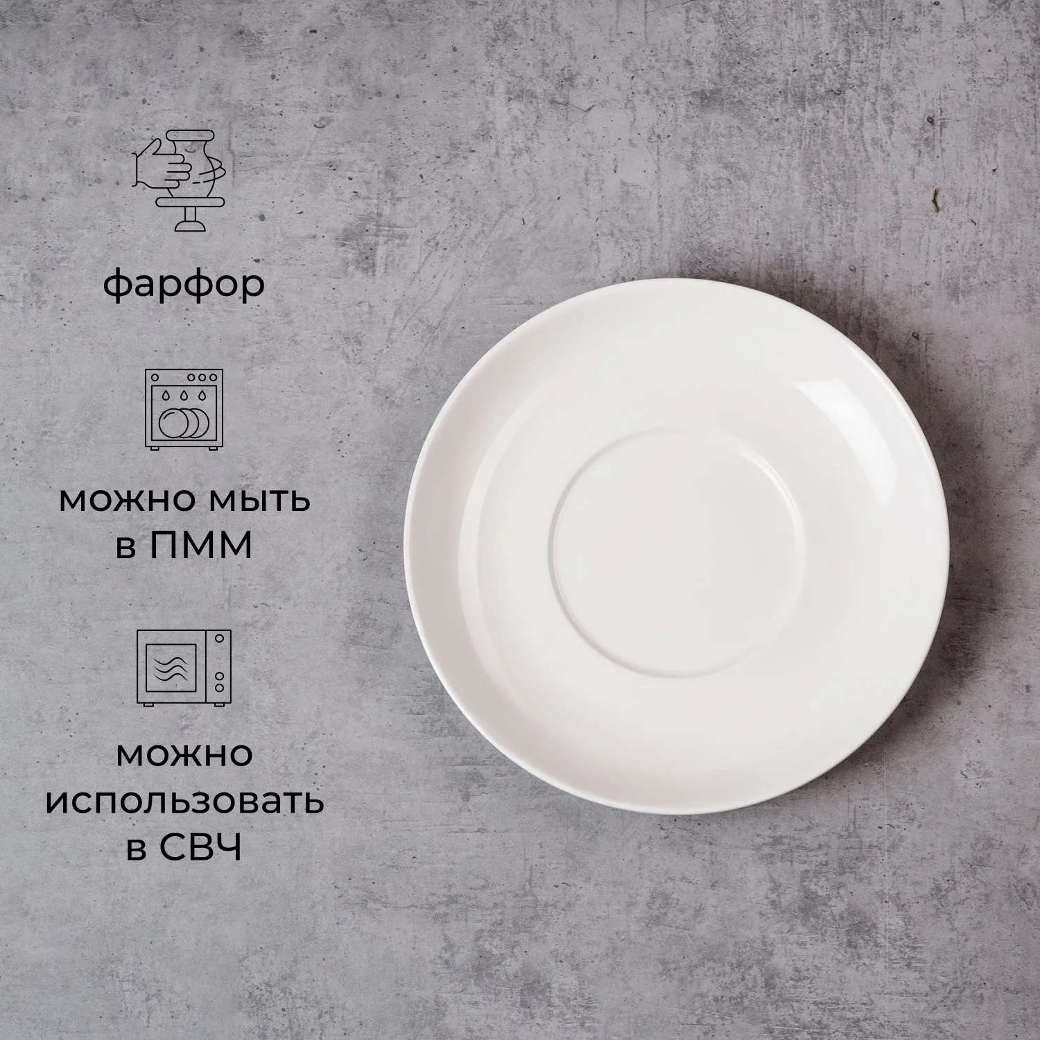 Стильные белые блюдца – это классическая посуда, которая часто используется при сервировке стола дома, в ресторане, баре и кафе. Тарелки подойдут для подачи основного блюда на завтрак – десерт, выпечка, яичница, омлет. Используйте их в качестве сервировочных блюд для подачи сырной и мясной нарезки, овощей и фруктов. Белый цвет универсален и будет сочетаться с любым набором цветной и однотонной посуды.