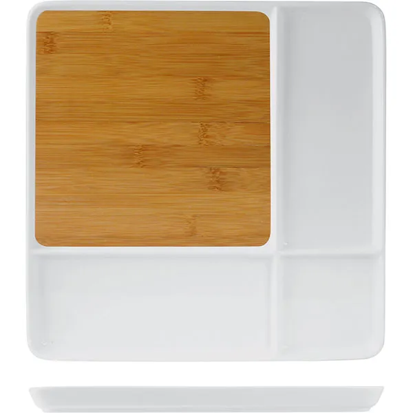 Блюдо для подачи бамбук,фарфор ,H=23,L=290,B=290мм св. дерево,белый