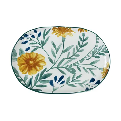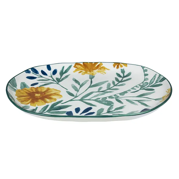 Блюдо «Луга» Цветок овальное керамика ,H=20,L=260,B=175мм белый,разноцветн.