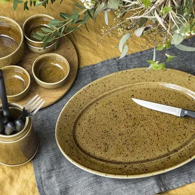 Блюдо «Кантри Стайл» овальное фарфор ,H=15,L=360,B=260мм зелен.