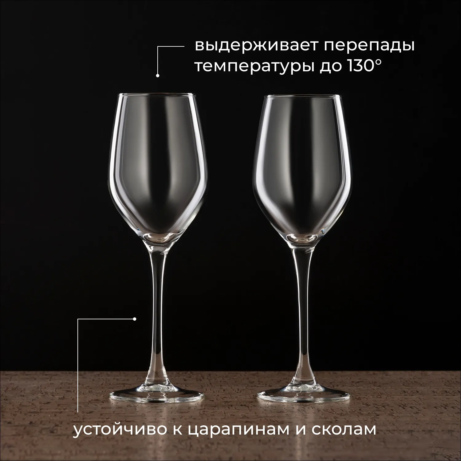 Качественная посуда выполнена из прозрачного стекла. Материал прекрасно переливается в свете ламп, так как отличается высокой степенью прозрачности. Напитки в нем выгодно играют на солнце. Тонкая ножка позволяет аккуратно держать фужеры в руках, чтобы во время дегустации напитки не нагревались от тепла рук.