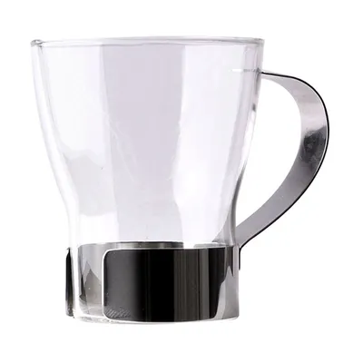 Чашка кофейная термост.стекло,сталь 375мл D=86,H=100,L=117мм прозр.,серебрян.