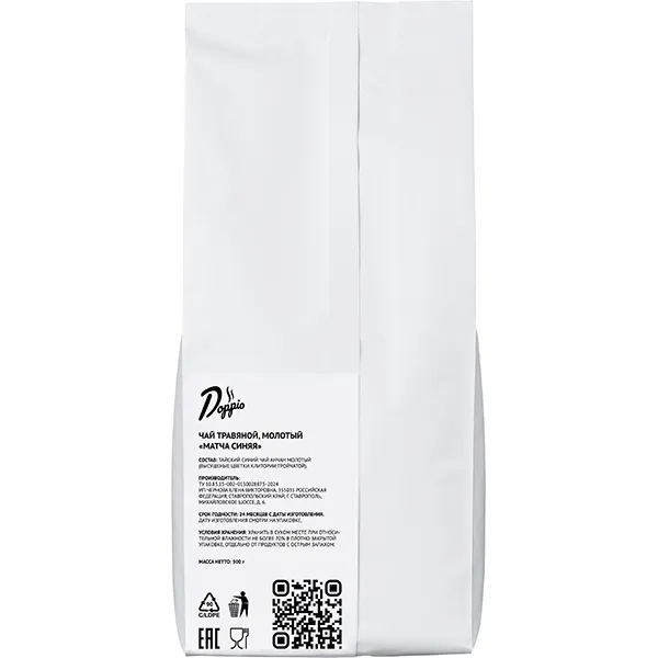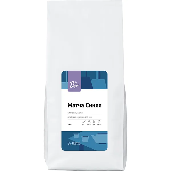 «Матча синяя» – уникальный продукт бренда Doppio, приготовленный из синего чая Анчан. Это травяной чай, который производится из цветков тайского растения (клитории тройчатой) и подвергается специальной обработке. Такая технология позволяет получить насыщенный синий оттенок, травянистый вкус и легкий цветочный аромат.