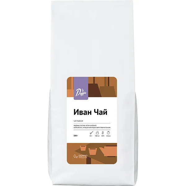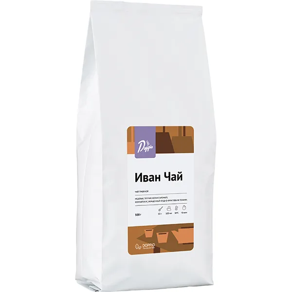 «Иван чай» – традиционный напиток, заваривается из листьев кипрея узколистного. Для его приготовления бренд Doppio собрал качественное сырье, выращенное в средней полосе России, и подверг двойной ферментации.