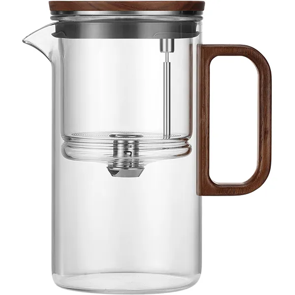 Чайник заварочный «Гунфу» с фильтром стекло,дерево 0,5л ,H=14,8см прозр.,коричнев.