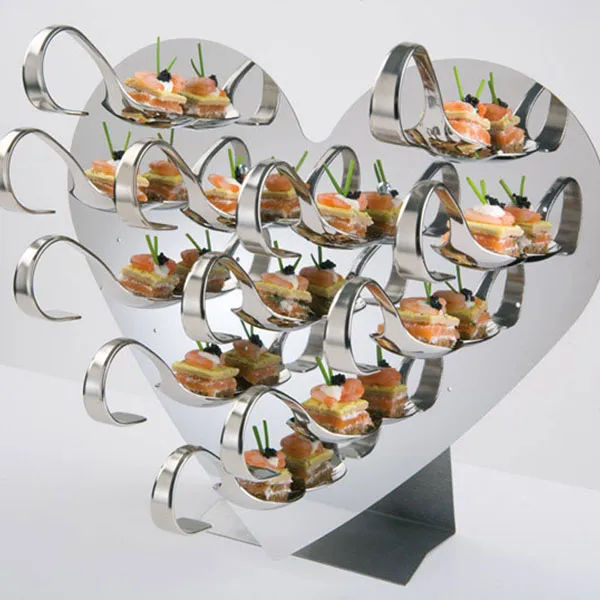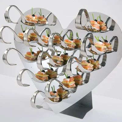 Этажерка «Сердце» +12ложек +20 дер. шпажек сталь нерж. ,H=26,L=32,B=15см металлич.