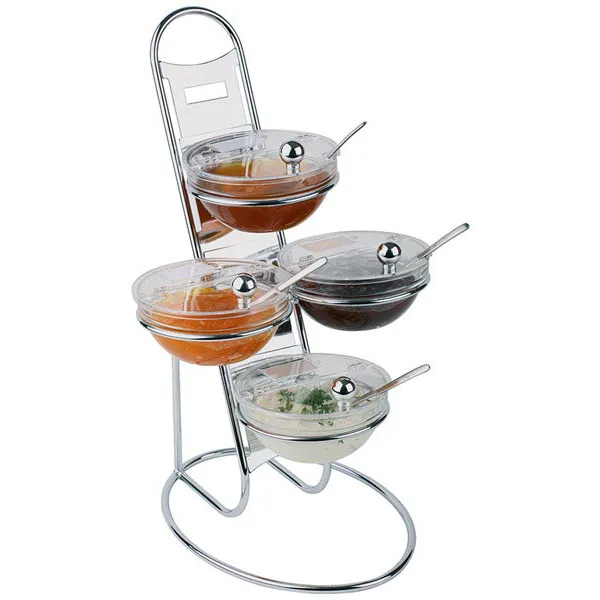 Стойка фуршетная на 4 емкости + 4 салатника с крышками сталь хромир.,стекло ,H=48,L=30,B=30см металл