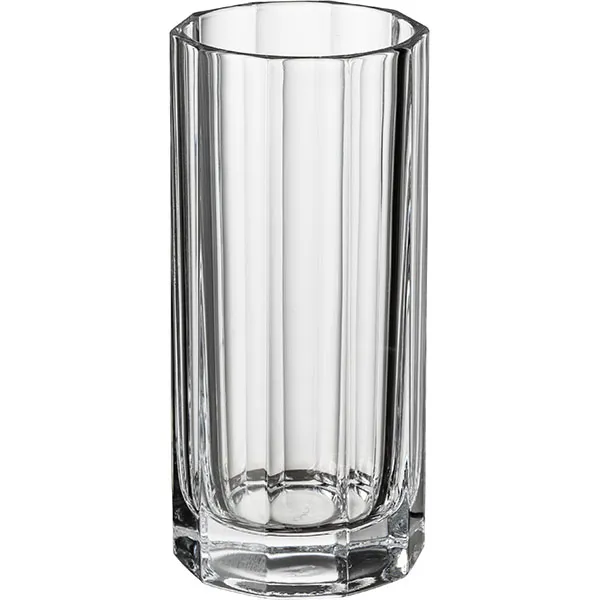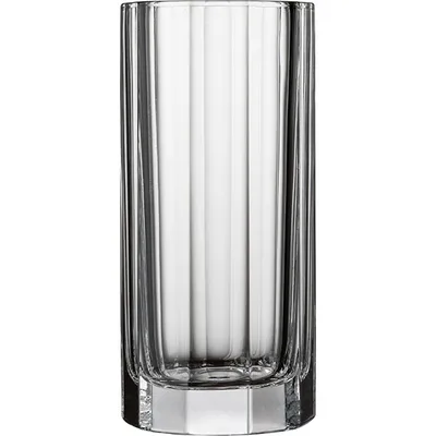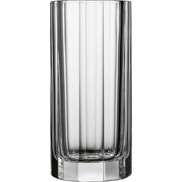 Хайбол из серии Churchill турецкого бренда Nude впечатляет архитектурной элегантностью и строгой геометрией формы. Высокий цилиндрический силуэт украшен изящными вертикальными гранями, которые тянутся от массивного основания до самого верха. Его дно, словно постамент, обеспечивает надежную устойчивость. Но также служит оптической линзой, преломляющей свет и добавляющей напитку дополнительную глубину.
