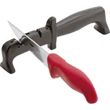 Точильный камень бренда Paderno универсален: подходит для заточки всех типов ножей и кухонных инструментов. Пригодиться и профессиональным поварам, и кулинарам-любителям. Его легко использовать даже новичку. Потребуется немного воды и несколько движений под нужным углом – 15-20 градусов. Двигаться нужно от пятки к кончику. По завершении работы камень стоит промыть и дать высохнуть. Регулярная очистка сохранит абразивные свойства.