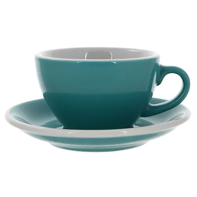 Кофейная пара «Эгг» фарфор 200мл D=95/145,H=55,L=115мм бирюз.