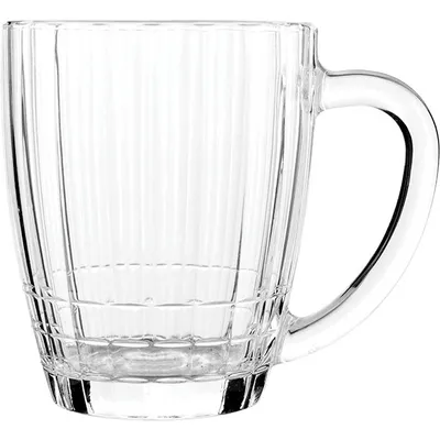 Высота посуды 124 мм, диаметр 97 мм, а объем бокала равен 500 мл, что соответствует нормам классической пивной кружки. Есть удобная и большая ручка. Кружка из прозрачного стекла. При этом материал действительно кристально чистый, за прозрачными стенками отлично виден цвет напитка.