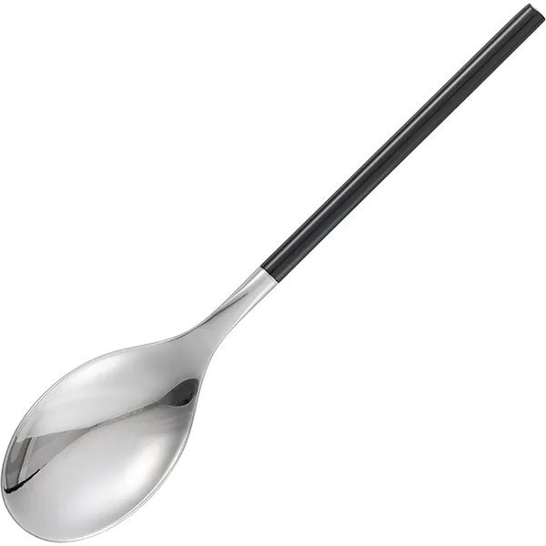 Столовая ложка «Дистрикт Сильвер Блэк Глосс» воплощает современную элегантность в контрастном сочетании глянцево-черной рукоятки и зеркально-полированной чаши. Благородный блеск и классическая форма создают впечатление изысканной простоты.