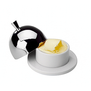 Масленка с крышкой фарфор,сталь нерж. D=9,H=7см белый