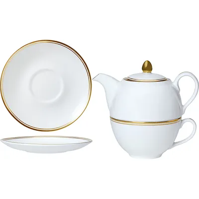 Набор посуды «Беништ Голд» чайник, чашка и блюдце[3шт] кост.фарф. белый,золотой