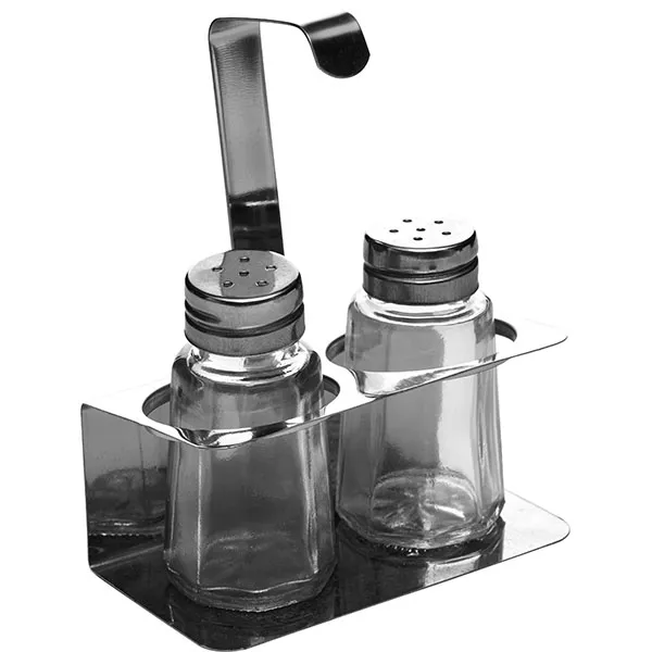 Набор для специй солонка и перечница на подставке сталь нерж.,стекло 50мл ,H=100,L=100,B=52мм серебр
