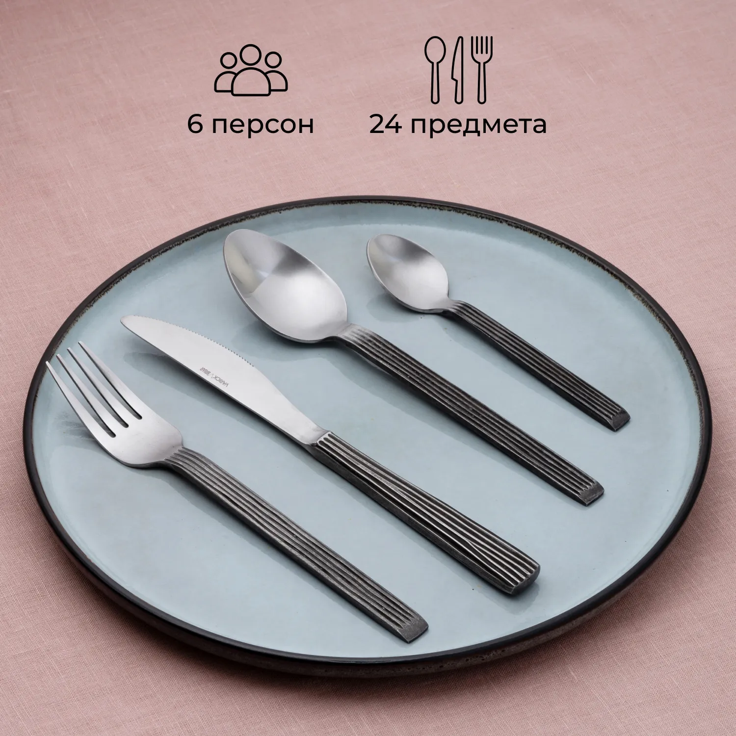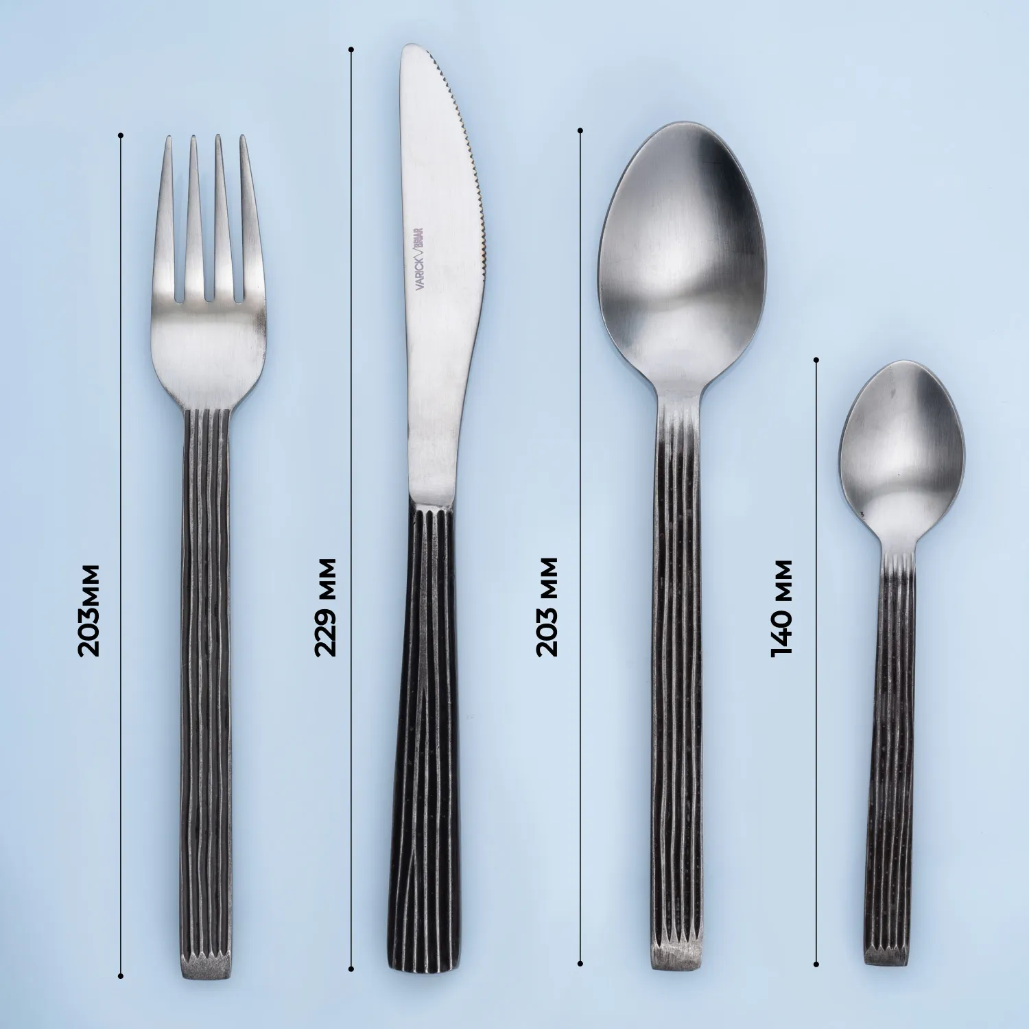 Набор столовых приборов «Дистрест» выполнен из высококачественной нержавеющей стали, что обеспечивает его долговечность и устойчивость к коррозии. Матовое покрытие придает набору элегантный и современный вид, гармонично вписывающийся в любой интерьер. Необычный дизайн приборов добавляет изысканности и подчеркивает качество материалов.