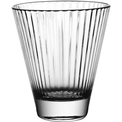 Толстое дно стакана плотно прилегает к столу и не допускает опрокидывания. Большое количество вертикальных граней придает бокалу интересный внешний вид. Допускается мойка в посудомоечной машине. Объем – 320 мл. Производитель – Италия.