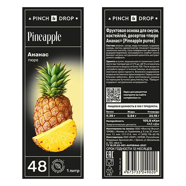 Пюре «Ананас» фруктовое Pinch&Drop пластик 1л D=7,H=26см