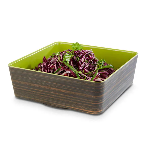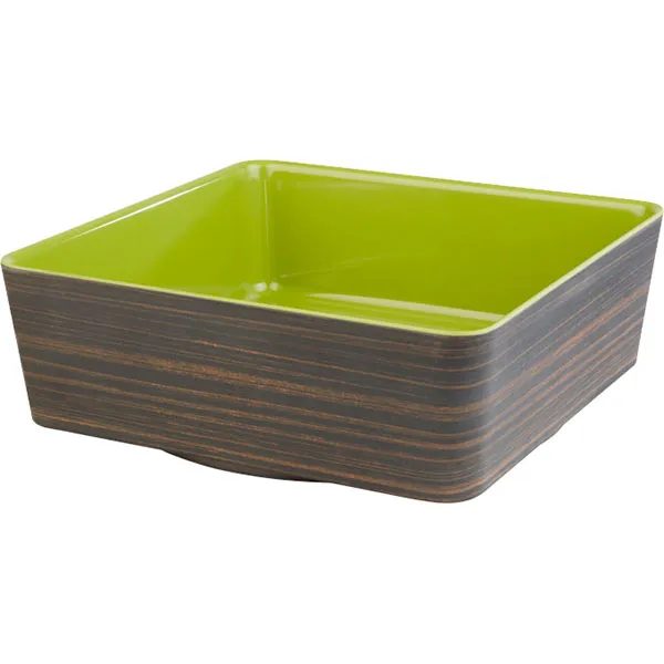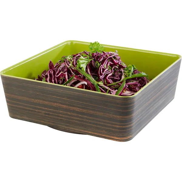 Салатник квадратный пластик 4л ,H=90,L=265,B=265мм тем.дерево,зелен.