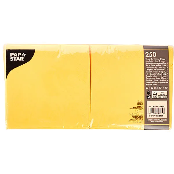 Салфетки бумажные трехслойные 33*33см[250шт] бум. салфет. ,H=11,L=33,B=17см желт.