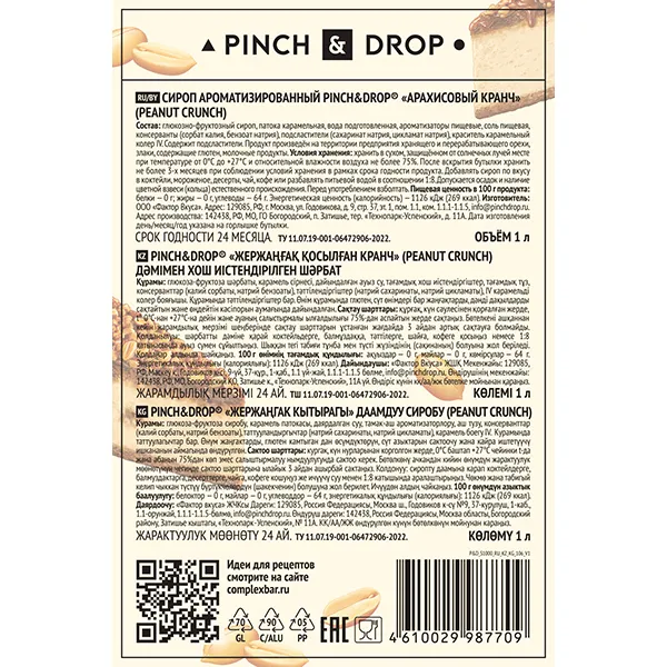 Сироп «Арахисовый кранч» Pinch&Drop стекло 1л D=85,H=330мм