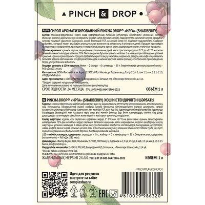 Сироп «Ирга» Pinch&Drop стекло 1л D=85,H=330мм