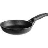 Диаметр сковороды составляет 25 см. Изготовлена она из литого алюминия с антипригарным покрытием. С таким покрытием проще отделять готовые блины от поверхности. Материал (литой алюминий) обеспечивает равномерное пропекание жидкого теста. Сковорода совместима с индукцией и подходит для других типов плит.