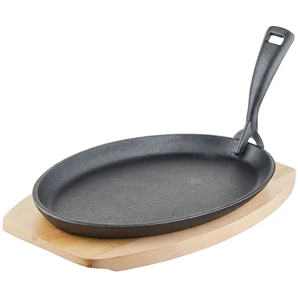Сковорода для фахитос на подставке чугун,дерево ,H=40,L=310/275,B=175мм черный,св. дерево