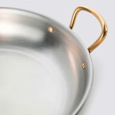 Сковорода для подачи «Бином» с двумя ручками с тиснением латунь,сталь нерж. 0,84л D=190,H=35мм золот