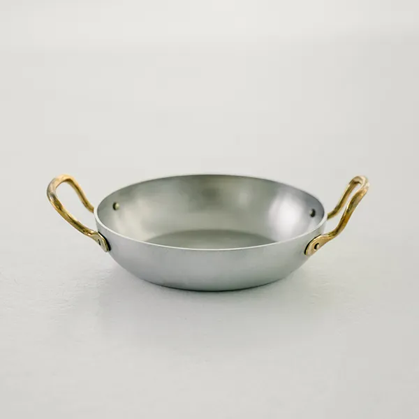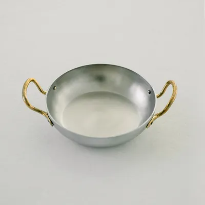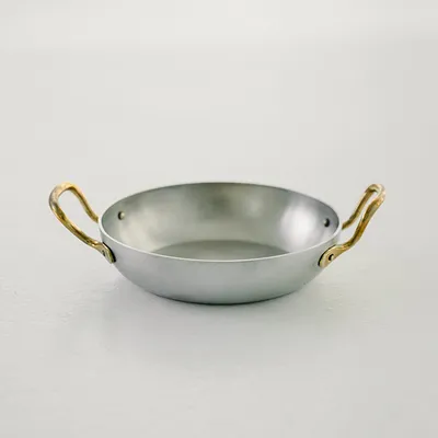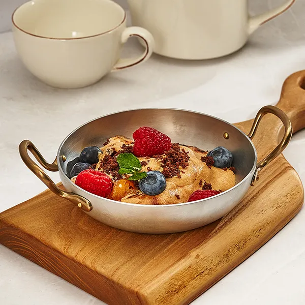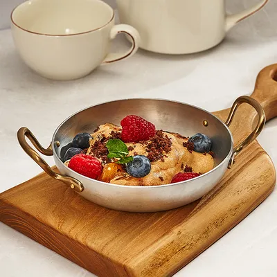 Сковорода для подачи «Арго» с двумя ручками алюмин.,латунь 450мл D=140,H=35мм серебрист.