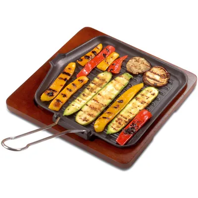 Сковорода-гриль на подставке чугун,дерево ,H=4,L=28/19,B=26см черный,св.корич.