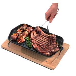 Сковорода-гриль на подставке чугун,дерево ,H=4,L=38/19,B=24см черный,коричнев.
