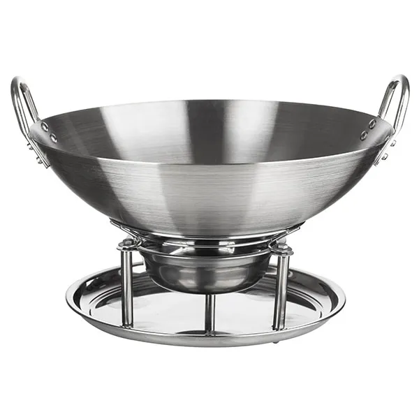 Сковорода «Садж Вок» без крышки с ручками и подставкой сталь нерж. D=380,H=69,L=400мм металлич.