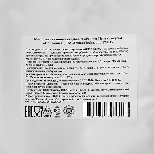 Смесь сухая для приготовления пены «Сливочная» 250 г картон,пластик