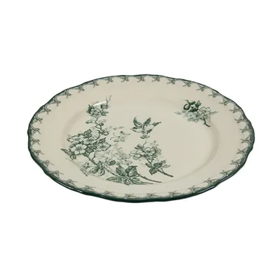 Тарелка «Боярышник» плоская керамика D=185,H=23мм белый,зелен.