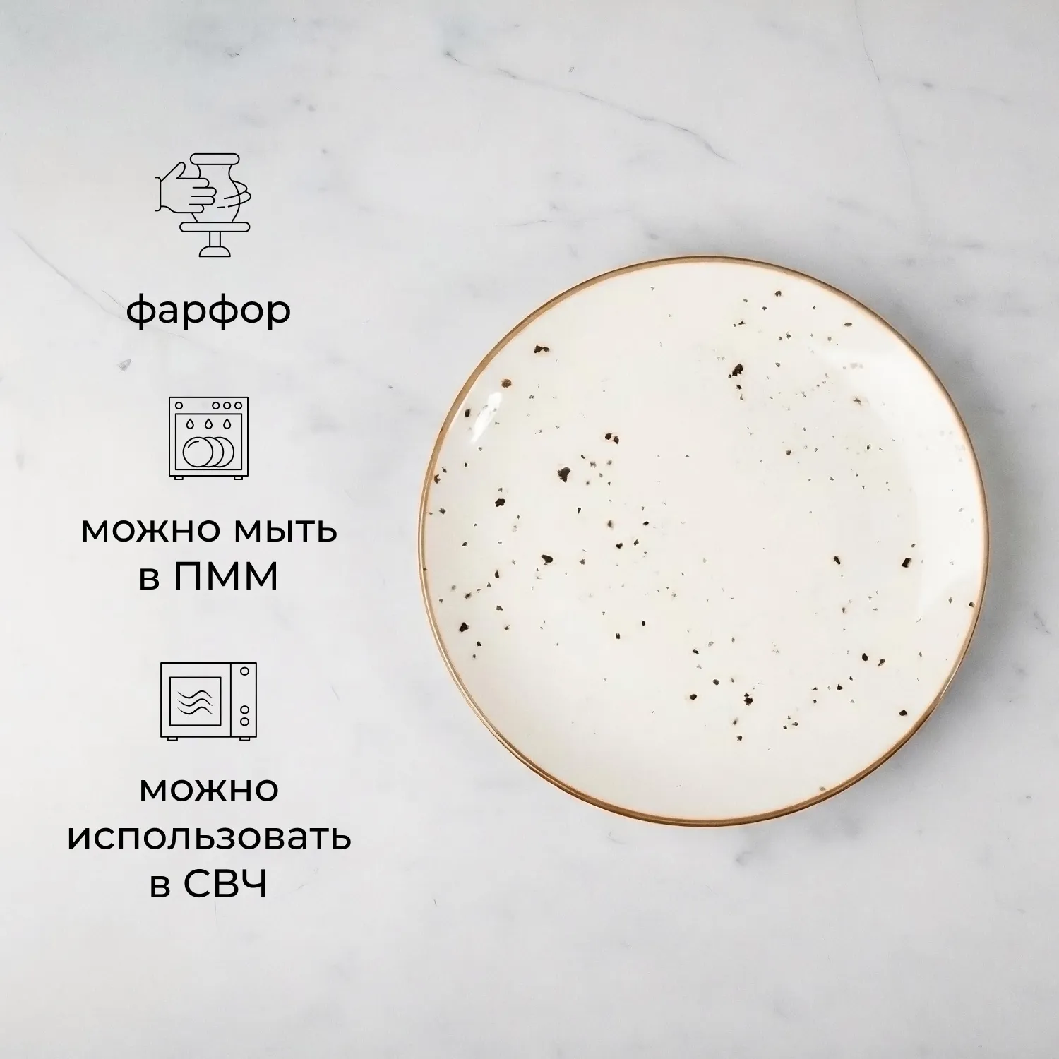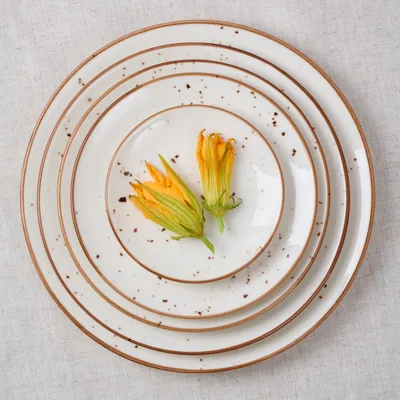 Тарелка бренда Kunstwerk – образец сбалансированной элегантности и функциональности. Модель с гладкой молочно-белой поверхностью украшена деликатными коричневыми вкраплениями и тонким кантом – узнаваемым элементом коллекции Paris, придающим сервировке индивидуальность. Диаметр 21 см оптимален для порционной подачи.