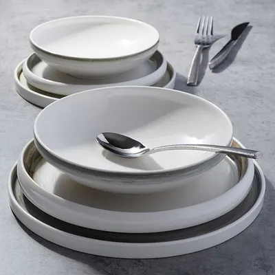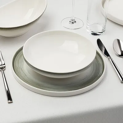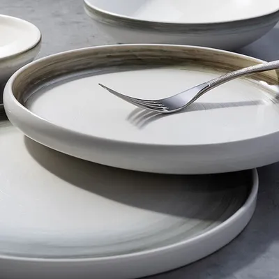 Тарелка «Айсио» с высоким бортом фарфор D=279,H=17мм белый,серый