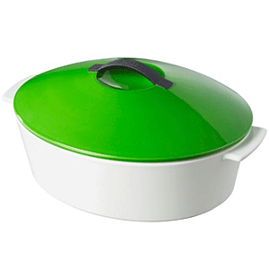 Утятница с крыш. керамика 4,2л ,H=18,L=36,B=26см белый,зелен.
